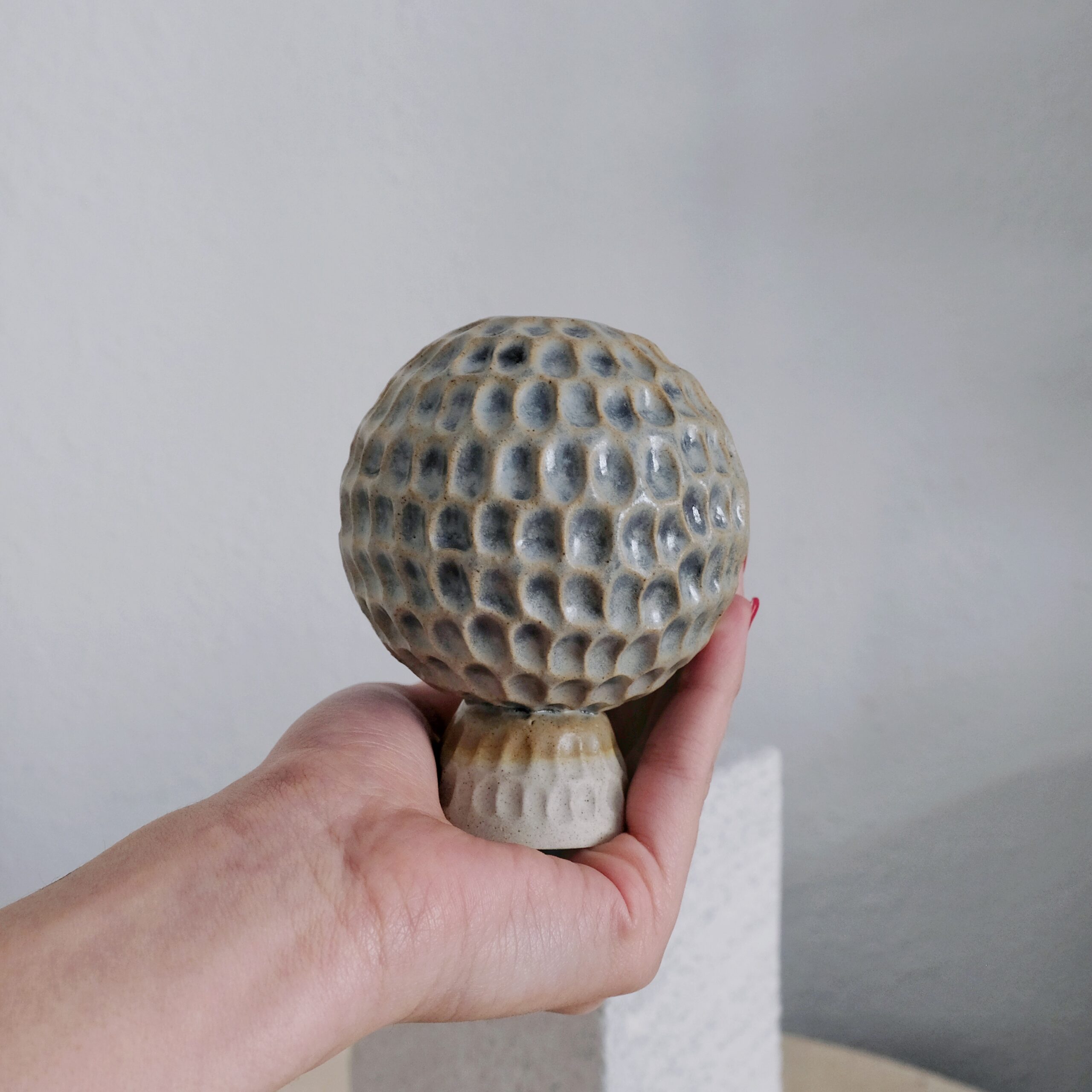 I love the shape, and I think its a cute sphere mini vase – The stripes was a new idea that I think will never happen again because of its time invensitivity haha. But it turned out beautiful! Hope wherever she lands she is as happy as Lara with her pieces <3