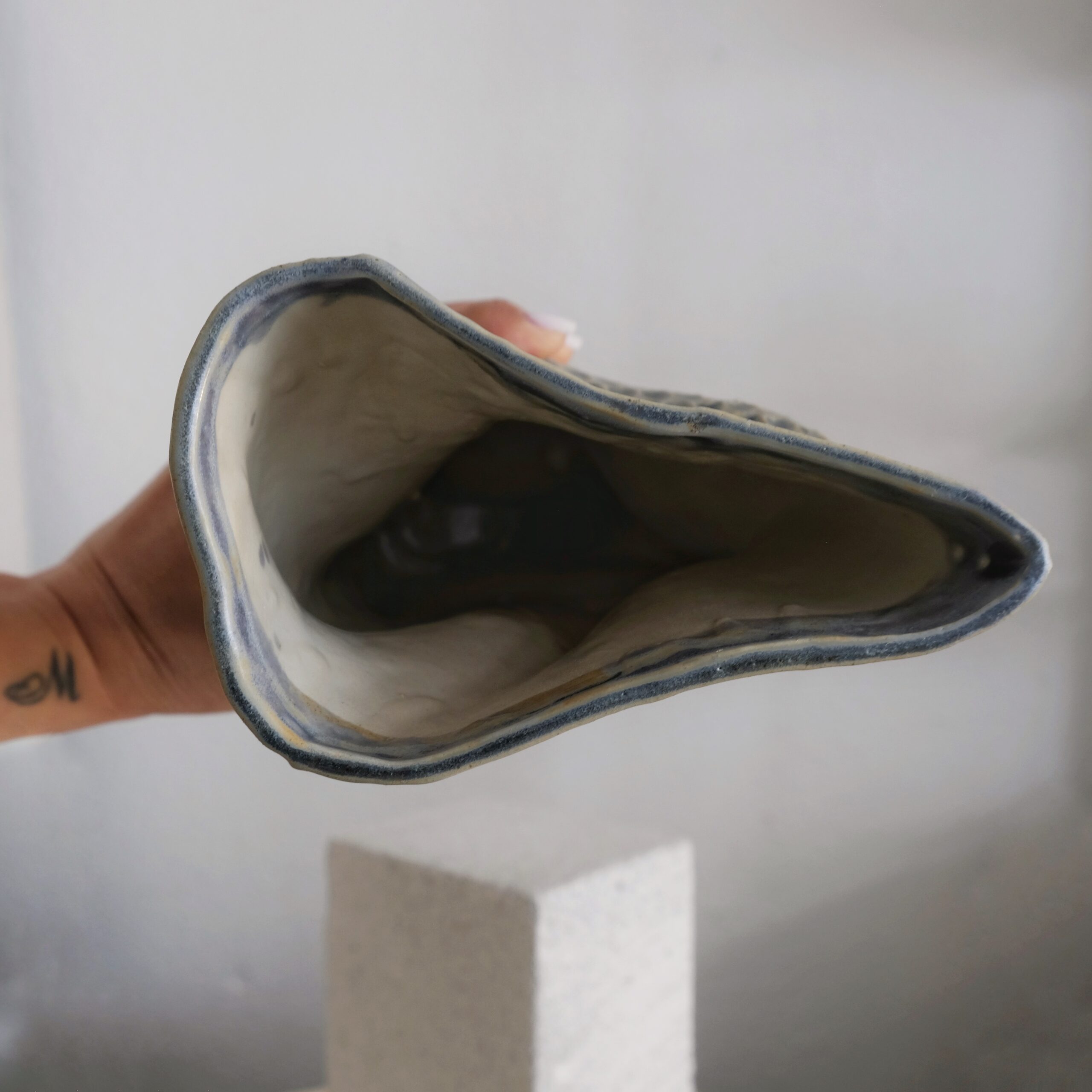 Material: Carved is made out of stoneware and glazed with Everything Blue.