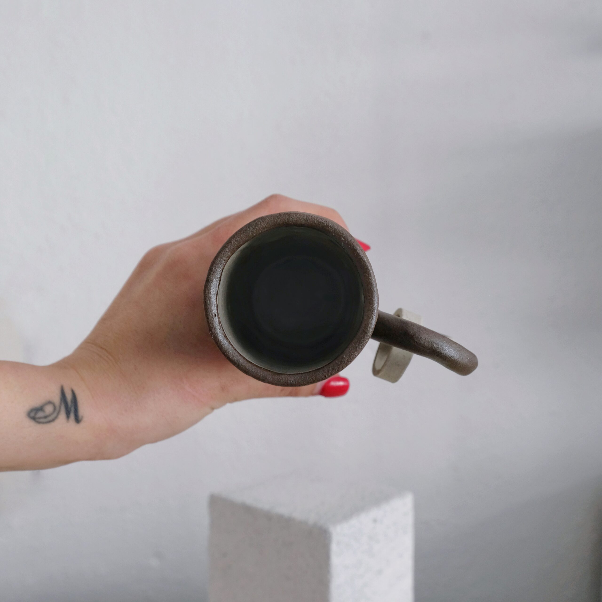 This piece is dipped in a slip made from wild clay I foraged along the banks of the Magdalena River, near Barranquilla, the city where I grew up in Colombia. The Magdalena is one of South America’s great rivers, and its sediment carries millennia of geological memory. When fired, this clay transforms into something unexpected: a surface that is simultaneously matte and metallic, catching light in a way that feels more mineral than ceramic.