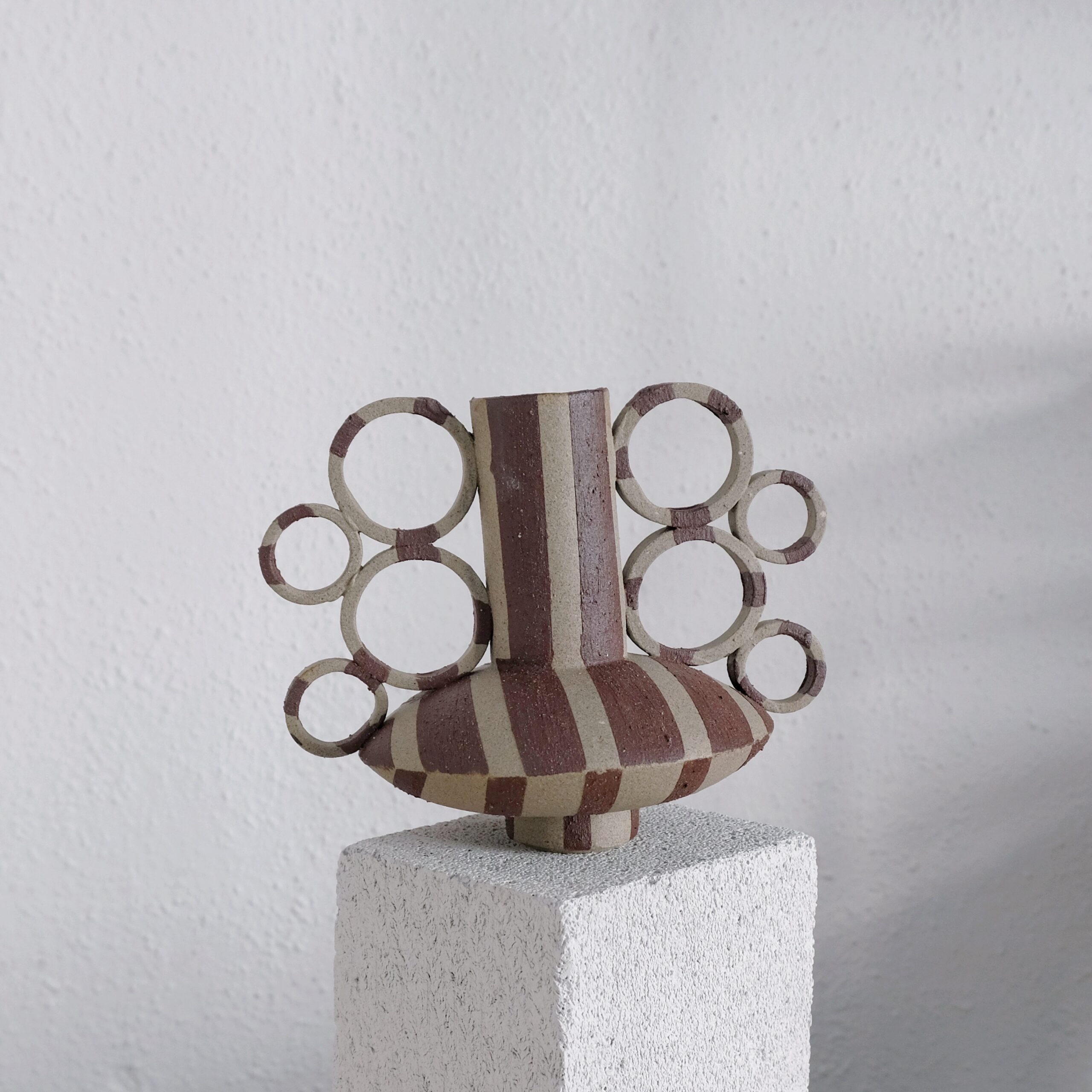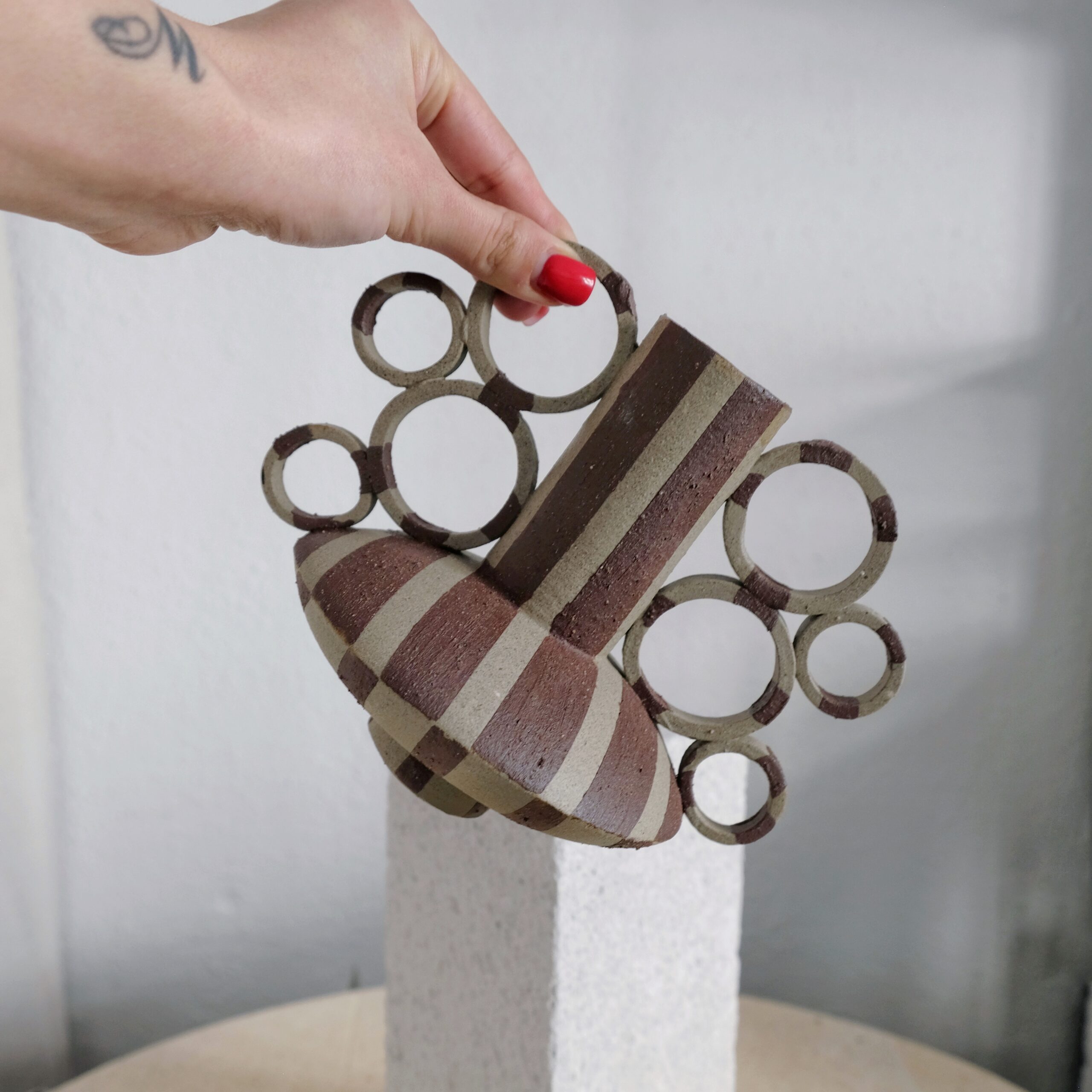 Material: Body of this piece is made with 70% Kufstein Wild Clay and 30% porcelain, the dark brown stripes are made from Vorarlberg Wild Clay.