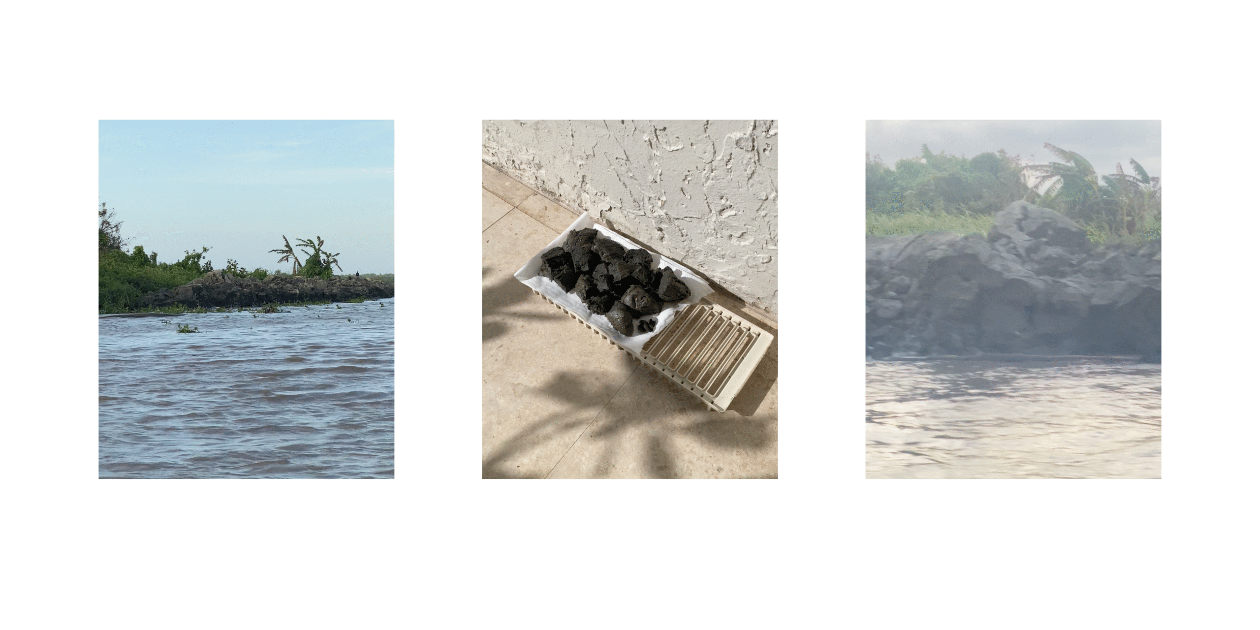 We stopped. My dad helped me shovel some out. We didn’t have any bags so we used the plastic packaging from the six-pack of beers — in Colombia they come wrapped in plastic, so we dismantled that and used it to store the clay in the meantime. On the way back I watched Barranquilla from the water and thought: I almost didn’t ask.